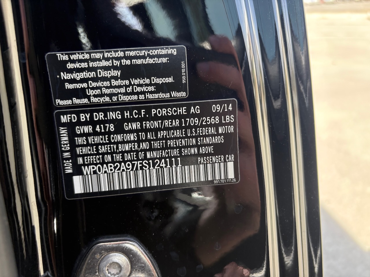 - VIN: WP0AB2A97FS124111