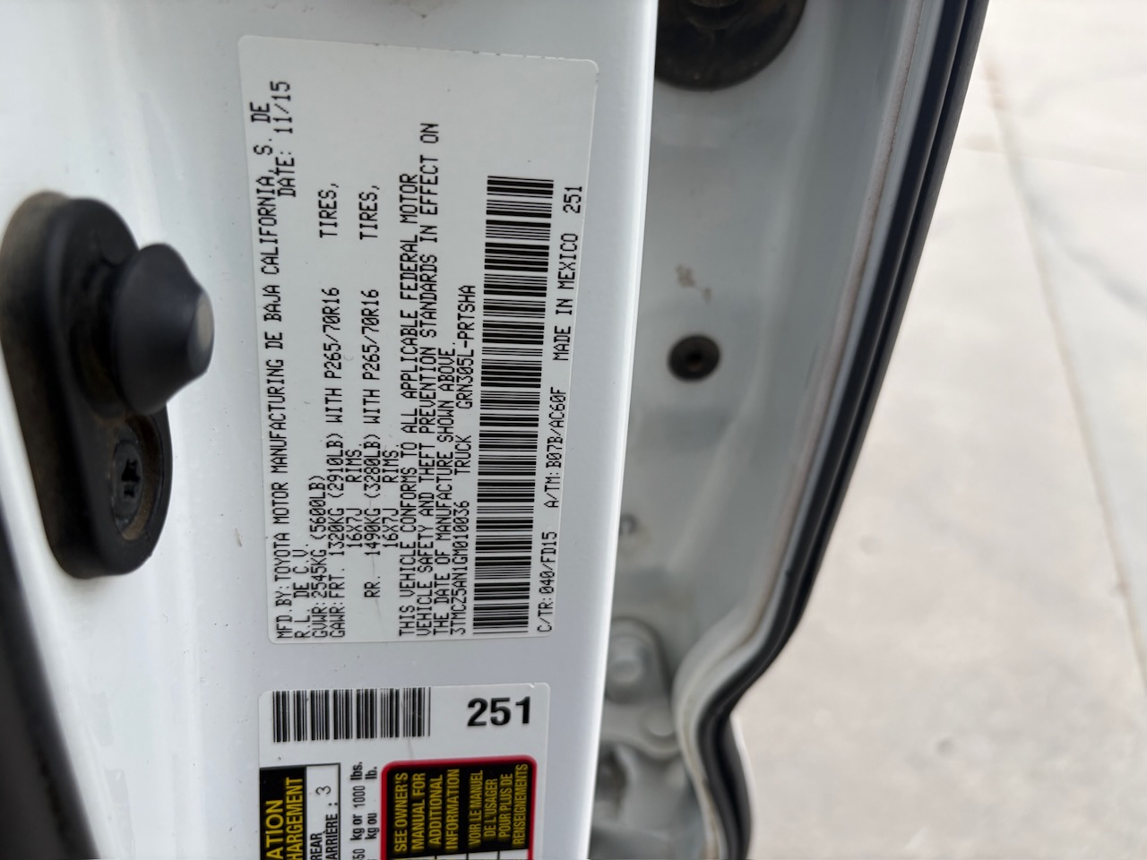 - VIN: 3TMCZ5AN1GM010036