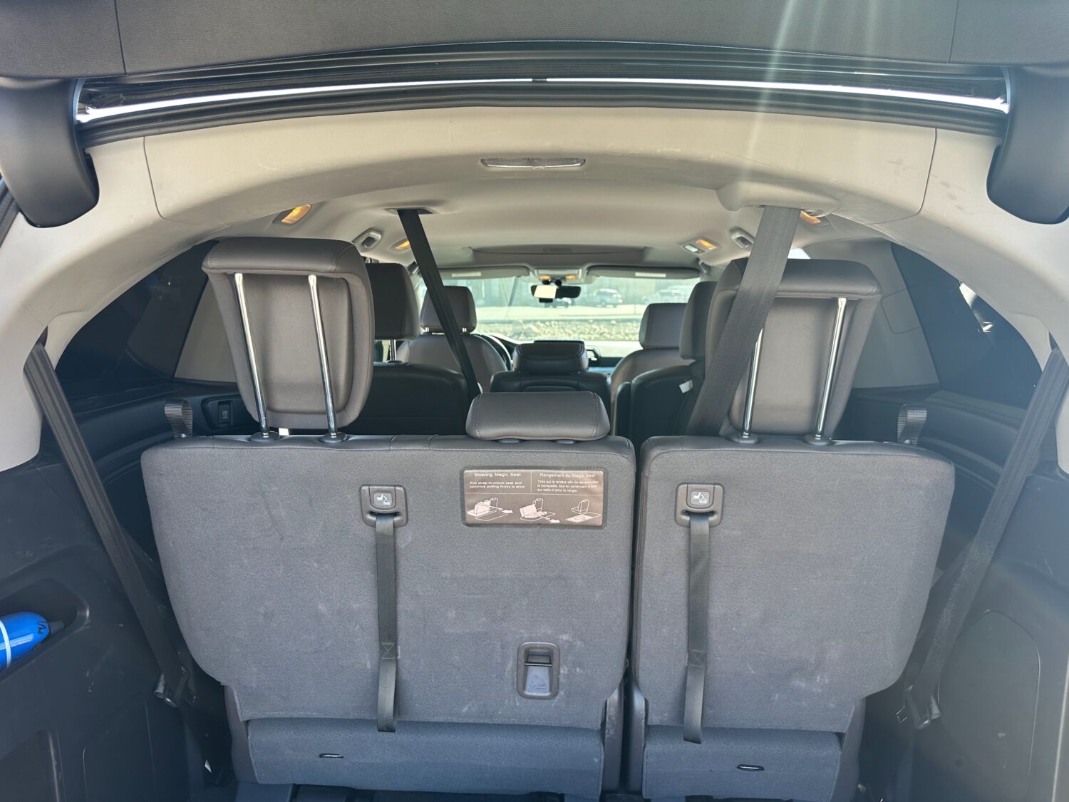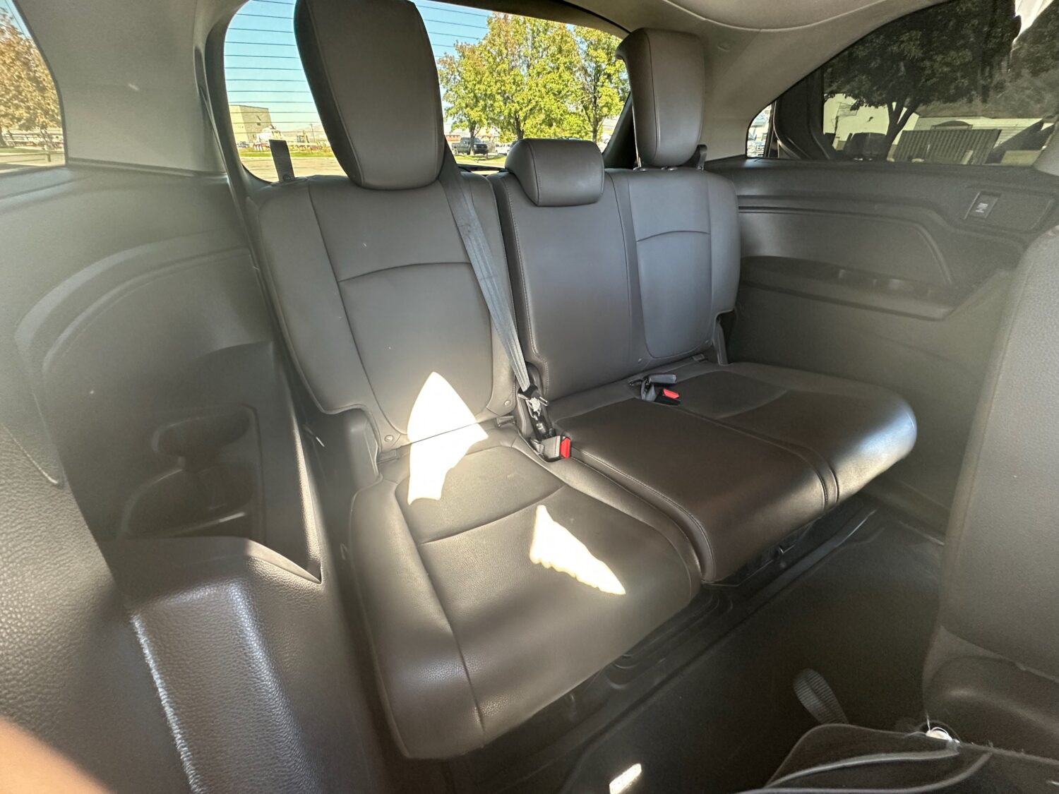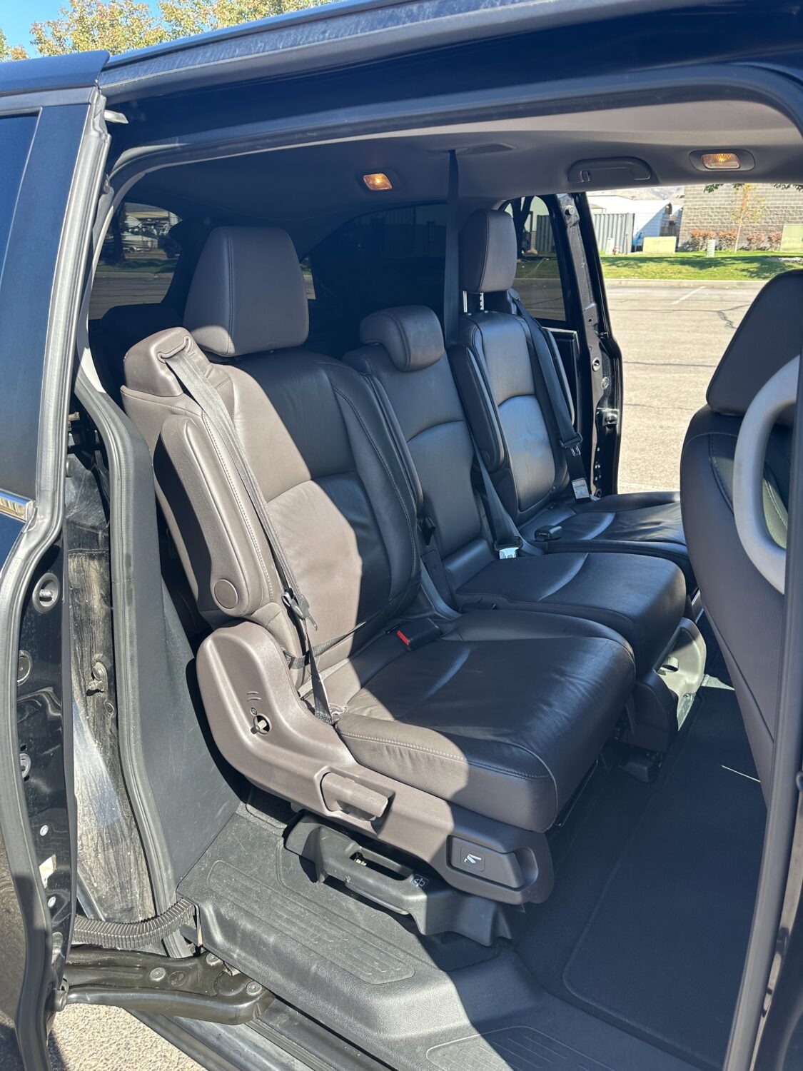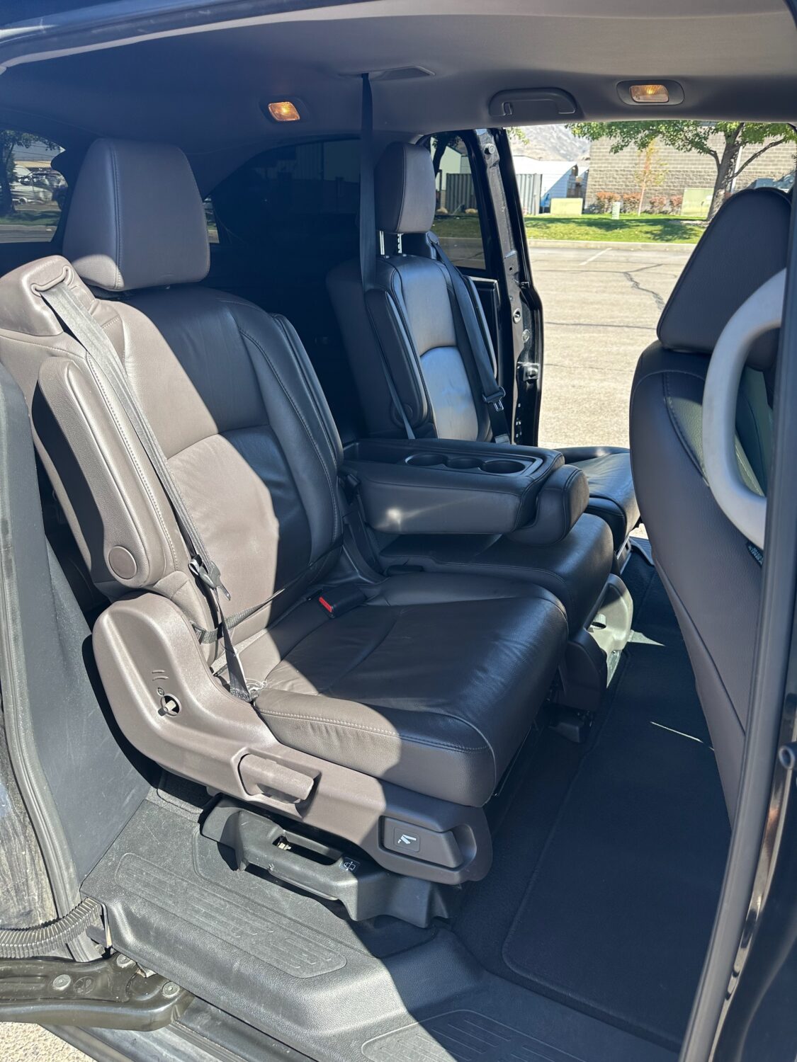First, privacy. This Odyssey is black with crazy dark black windows. We bought it out of Nevada and they don’t have any stupid laws like we do here. Let’s just say you don’t really need sunglasses when you drive this. And to look in? Yeah that ain’t happening. Nobody sees inside of this from the outside. But you? You can stare at anyone you want and they won’t even know. When someone drives like a moron around you you can look and judge without any worry. Comfort? Loads of it. Seats 8. EIGHT. On leather–nice dark coffee-colored leather. If you’re in the front you get heated seats. If you’re in the back you get seats cause you’re a kid and you have suffer a little bit alright! Your butt will be fine in the winter. You do get rear heat and AC though so you’re not totally living in the 90s. I grew up riding in the back of a 1989 Baby Blue Dodge Caravan with Wood Paneling on the outside that had 4 vents for the entire car. Up front. And it was the 90s so my dad would cycle the AC on and off to save fuel. And no cup holders. And only one side had a sliding door and we had to use our own strength to open and close that thing. Kids these days… so spoiled.