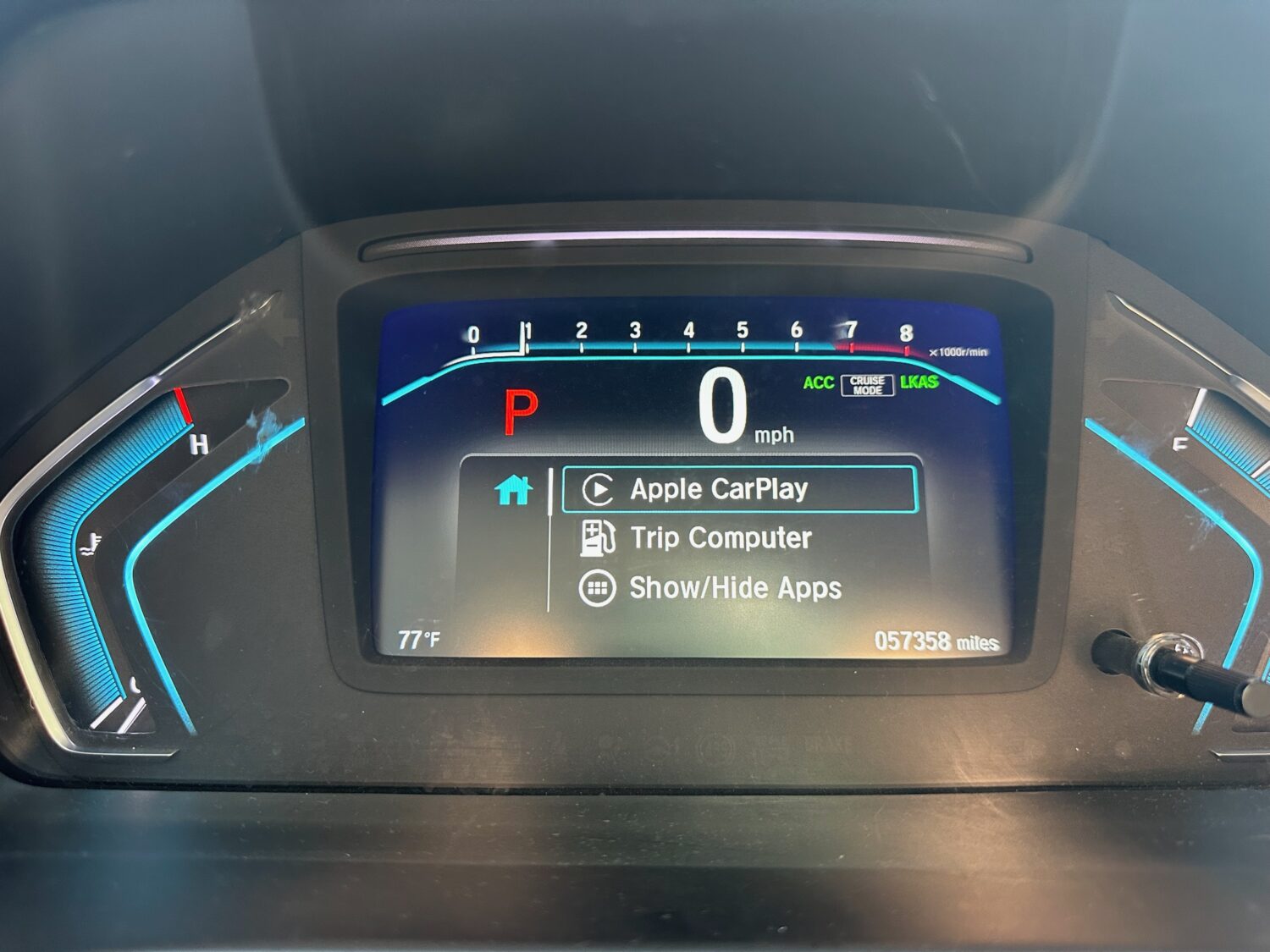 Tech? Yeah, this is a 2019, it has tech. Comes with wired CarPlay and Android Auto but we bought a thingamajig that’ll give you wireless and it works great. You can have it. Gratis. On me. Dash is digital, center console touch screen is obviously digital, but there are enough analog buttons and dials so you can still stay grounded in reality. Power doors, power locks, remote start, 2 key fobs (FOBS. What a word). There’s safety features too if you’re in to that. Blind spot alerts. Braking alerts. Put your seatbelt on alerts. I’d shut them all off if I could but I’m just a curmudgeon yelling at people to get off my lawn. What it does NOT have is that idiotic auto-shutoff at stoplights “technology”. What a moronic thing to put on a car.
