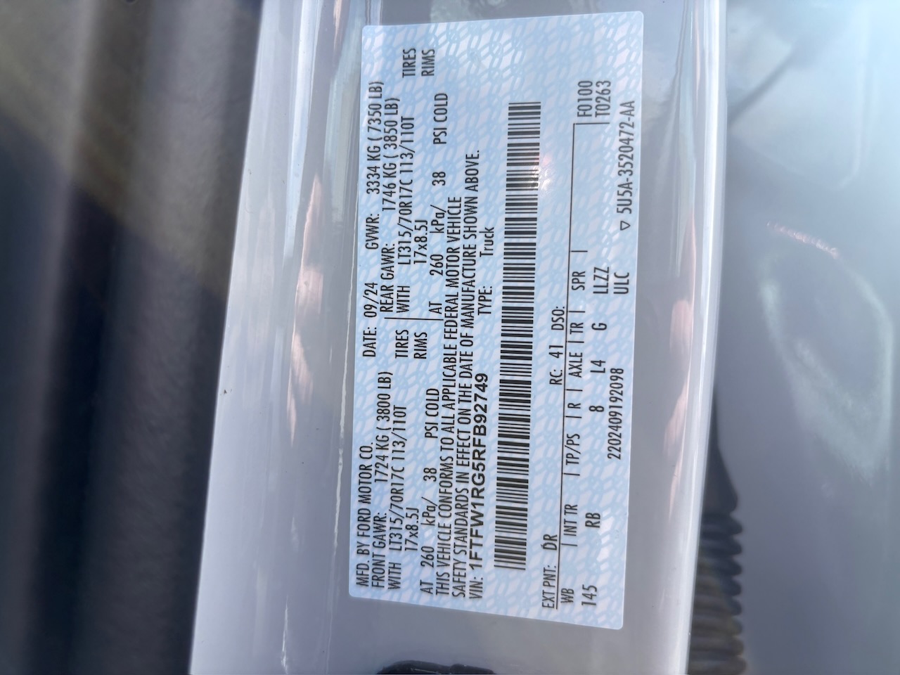 - 1FTFW1RG5RFB92749